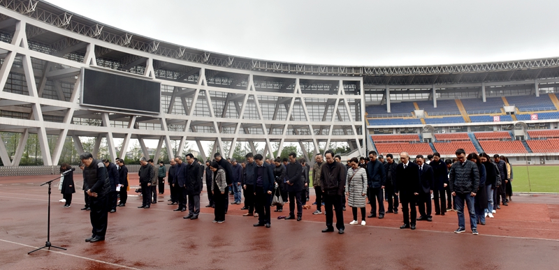 学校全体校领导、党委理论学习中心组成员、各单位各部门党政主要负责人,在校学生代表等100余人参加了默哀活动。