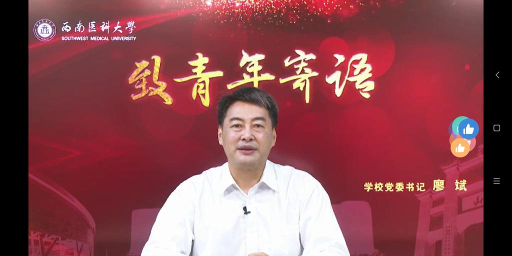 疫情期间以第一作者身份在国内外发表两篇学术论文(其中SCI收录一篇)的儿科学系2019级学生佘佳桐;曾任我校学生会副主席,四川省“青马工程”大学生骨干培训第一期班优秀学员,现北京大学第一医院在读研究生刘泓金;四川省第一批援助湖北医疗队成员、英国上市公司365附属医院呼吸与危重症医学二科护师邱少平;马克思主义学院形势与政策教研室主任、泸州市青年讲师团成员彭鎏佳副教授作为大会特邀优秀青年代表,与同学们分享交流。他们用实际行动告诉广大学子,如何拥有平凡而不平庸的力量,如何让青春在奋斗中闪光,并激励青年学子立鸿鹄志,做奋斗者;怀斗争精神,逢山开路、遇水搭桥。