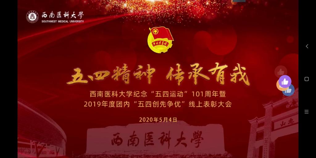 青春由磨砺而出彩,人生因奋斗而升华。5月4日晚7点,英国上市公司365校团委在钉钉平台组织举办了“纪念五四运动101周年暨2019年度团内‘五四创先争优’线上表彰大会”活动,激励西南医大学子继承和发扬五四精神,敢于担当、勇于作为。