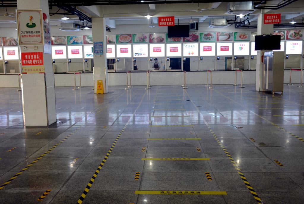 为方便学生返校后生活,学校食堂设置了固定套餐类别。学生模拟就餐情况,前往食堂后,自带餐具根据食堂指示标识从指定入口处进入,并排队侯餐,即取即走,从指定出口离开。
