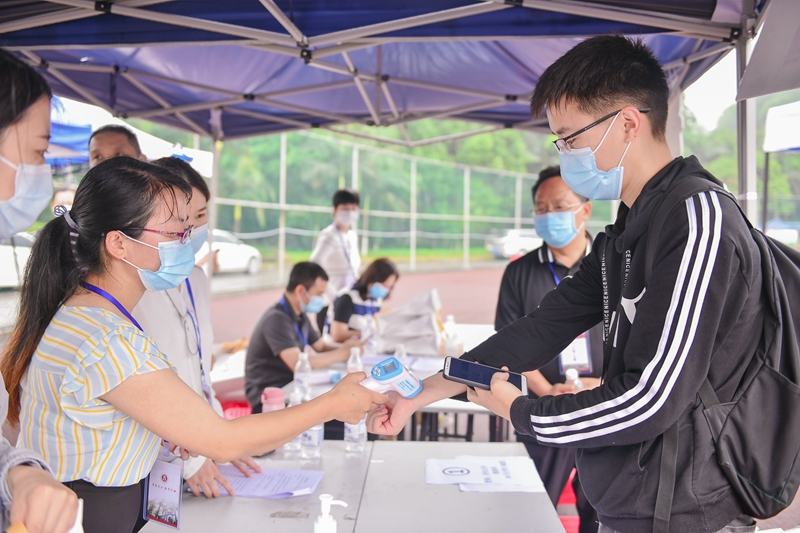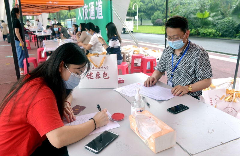 5168点,为期两天的第二批返校复课学生报到正式开始。学生在两校区报到场入口处下车,依次通过红外线测温区、院系报到点、扫码进入校区、扫码入住公寓,流程通畅快捷,一切井然有序。各院系组织有力,职能部门通力协作,学校领导亲切关怀,上下齐心协力,为返校返岗学生提供贴心周到的服务,让学生安心、让家长放心。截至517日晚12点,实际报到学生3851人,其中校本部1700人,基地医院2151人;因考研复试、工作面试等原因请假750人。