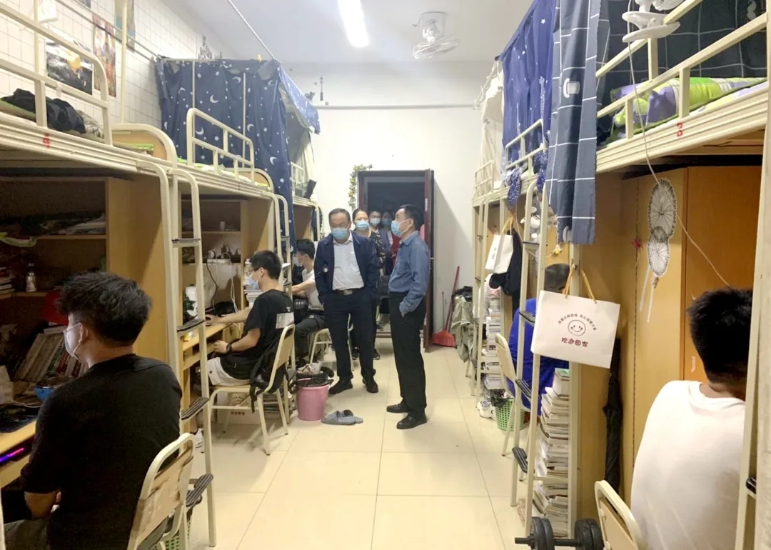 根据学校返校复课总体工作安排,为充分了解学生返校后复课教学运行及后勤保障工作情况,5月25日上午8点,学校全体校领导带队分成六个小组,深入忠山、城北两校区教室、宿舍,开展返校复课第一天教学检查。