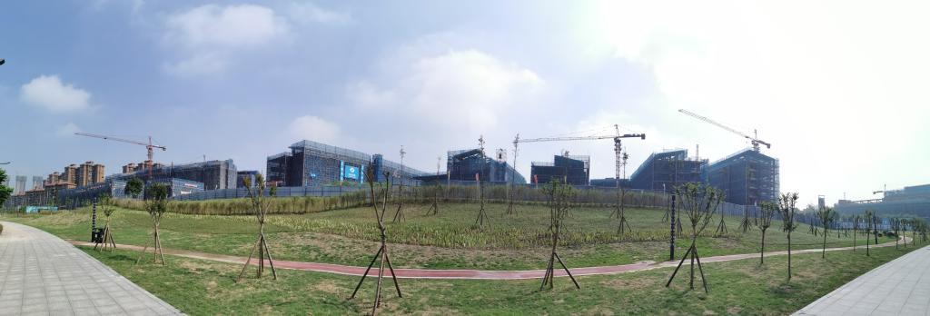 2019年,经学校积极主动与市区政府各职能部门协调,最终将该片区规划确定为绿化用地,由政府用财政资金为学校打造该周边环境,由两江新城管委会(建管中心)具体负责项目的实施。项目于2020年4月20日开工建设,到竣工验收仅用了45天。