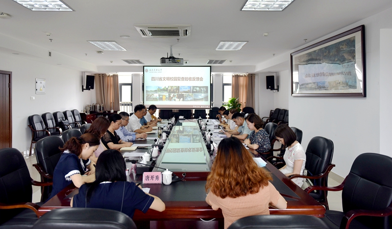 629日上午,受省文明办委托,泸州市委精神文明办主任、宣传部副部长阮小梅一行6人来到我校,对学校省级文明校园进行复查验收。检查组按照测评体系要求,通过查阅资料、实地考察、问卷调查等形式,对学校文明校园建设工作进行了深入检查。
