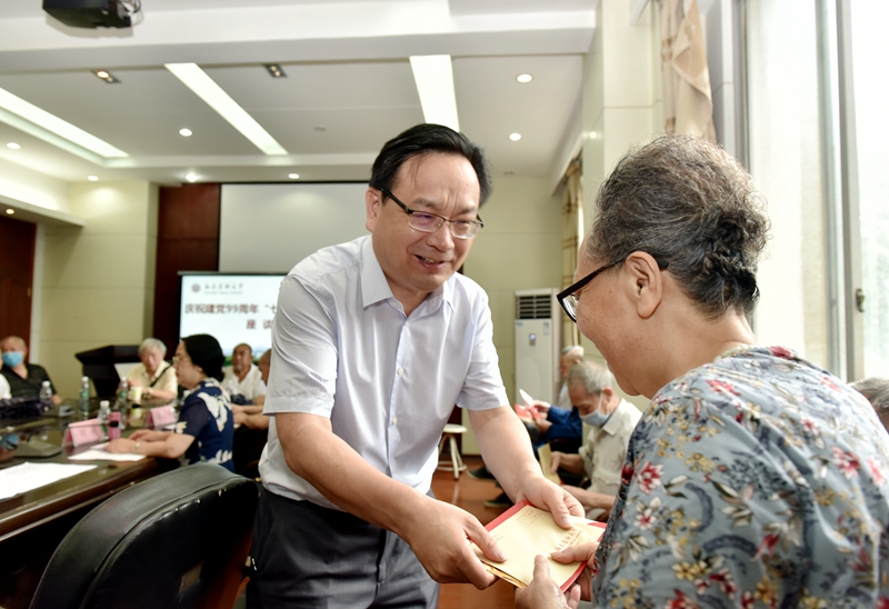 在集中慰问座谈会上,学校党委书记廖斌同志为老党员介绍了近期学校事业发展取得的重要成绩和努力方向,表达了对老党员的感谢、希望与祝福。一是感谢老党员们对学校事业发展作出的历史性贡献;二是希望老党员们继续发扬自强不新、守正出新的精神,积极为学校事业发展建言献策;三是祝福老党员身体健康、生活幸福。会上,学校党委还为老党员代表过了集体“党员政治生日”,与会全体党员重温了入党誓词。