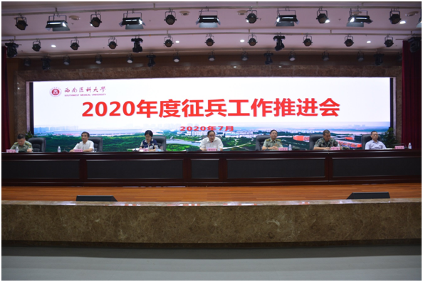 为贯彻落实省、市征兵工作推进会精神,全力做好疫情常态化防控背景下学校征兵工作,7月7日,学校2020年度征兵工作推进会在城北校区第一学术报告厅召开。党委副书记、纪委书记、征兵工作领导小组组长李尚志,泸州军分区副司令员汪国荣大校,龙马潭区人民武装部部长付毅上校、副部长宋科中校,学校征兵工作领导小组成员,各院(系)学生科科长、年级主任、辅导员参加了会议。会议由党委副书记、征兵工作领导小组副组长刘毅主持。