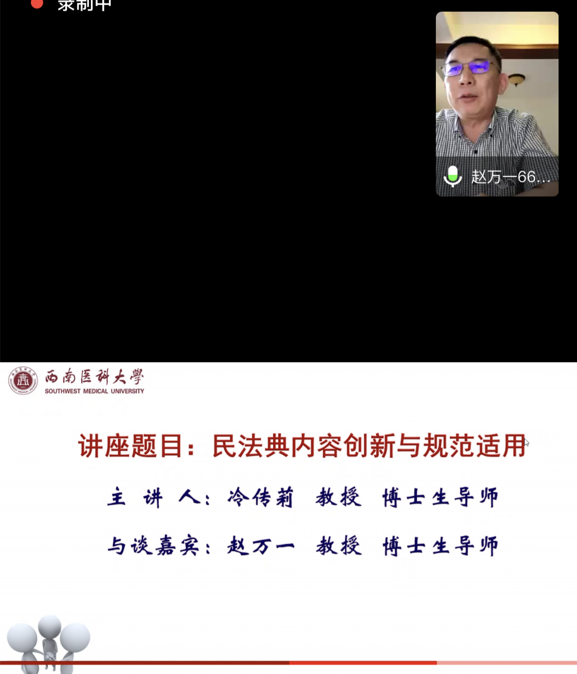7月16日下午,我校邀请到贵州大学法学院院长、二级教授、博士生导师、国务院特殊津贴专家冷传莉教授,通过腾讯会议平台为我校师生作了题为《<民法典>的内容创新与规范适用》的在线专题讲座。讲座由党委书记廖斌主持。