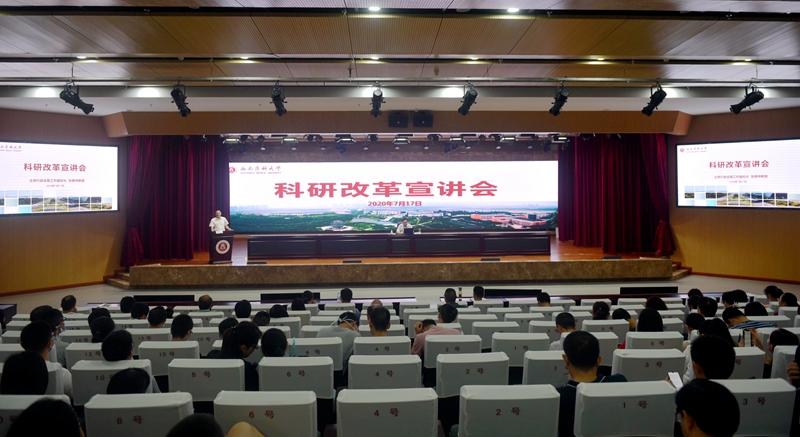 为进一步加快推进学校科研改革,促进学校事业高质量发展,7月17日晚,学校在第一学术报告厅召开科研改革宣讲会。会议由学校主持行政全面工作副校长张春祥教授主讲,科技处处长龙汉安教授主持,学校及三附院博士、50岁以下高级职称人员、科研骨干等770余人在现场聆听了宣讲,其余教职工通过网络直播形式观看了宣讲会。