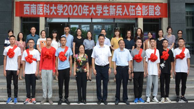 欢送仪式上,与会人员一同合影留念。张立新通报了2020年我校征兵情况,全校共有35人报名应征,上站体检27人,合格人数8人。