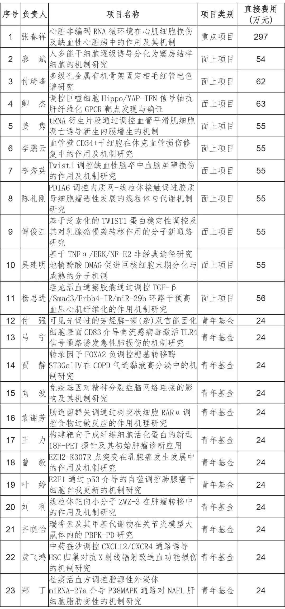 917日、27日,国家自然科学基金委分别发布《关于 2020年度国家自然科学基金申请项目评审结果的通告》及《关于2020年度国家自然科学基金申请项目评审结果(第二批)的通告》,截止目前我校现获批23项国家自然科学基金项目,其中重点项目1项、面上项目10项、青年科学基金12项,获批直接经费1150万元。