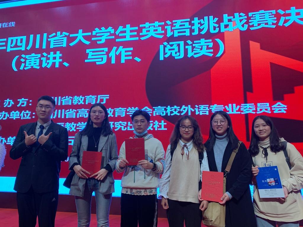 11月7日,2020年四川省大学生英语挑战赛决赛在西南石油大学举行,我校共选派六名选手参赛。经过激烈角逐,麻醉系2018级赵露喜获得阅读组一等奖,医学影像系2017级刘丽、2018级易福周获得阅读组三等奖,外国语学院2019级张吉婷、口腔医学院2019级周玉婷获得写作组优秀奖,基础医学院2019级刘航瑜获得演讲组优秀奖。我校学生首次喜获一等奖,实现了学校在该项赛事上新的突破。