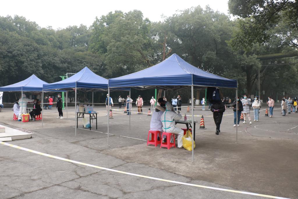 据统计,当日城北校区完成采样575人次,忠山校区完成采样349人次,共924人次,两校区均提前圆满完成了采样任务,学校附属医院及附属中医医院于28日上午为学生们出具核酸检测结果。