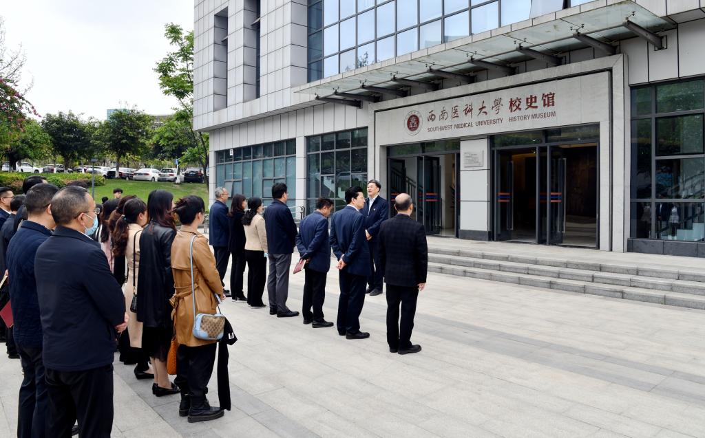 廖斌指出,忠山上有许多革命先辈留下的红色印记。朱德先后曾5次到过忠山,在忠山留下了泸顺起义战斗经历、《苦热》等诗,并在1963年4月2日重返忠山为学校题词“继承祖国医学遗产,学好现代医学科学,为广大人民服务”。中国共产党早期青年运动领导人恽代英在忠山上组建了四川省最早的社会主义青年团——泸县社会主义青年团,并在此开展活动,为泸州种下革命火种。以他们为代表的老一辈革命家,表现出了中国共产党党员追求真理、不忘初心的坚定信念,无限忠诚、光明磊落的坚强党性,心系人民、艰苦朴素的公仆情怀。学校党员领导干部要以老一辈革命家为榜样,传承好他们的精神品质,努力做合格共产党员,继续把革命前辈开创的伟大事业推向前进。
