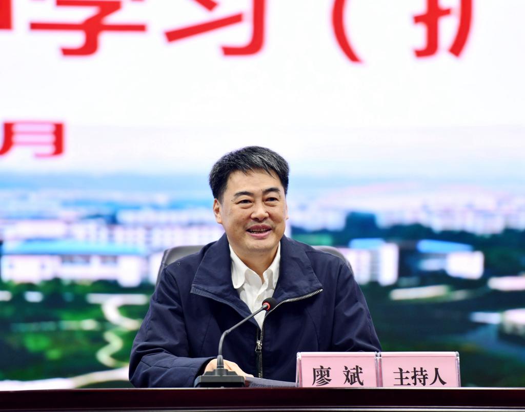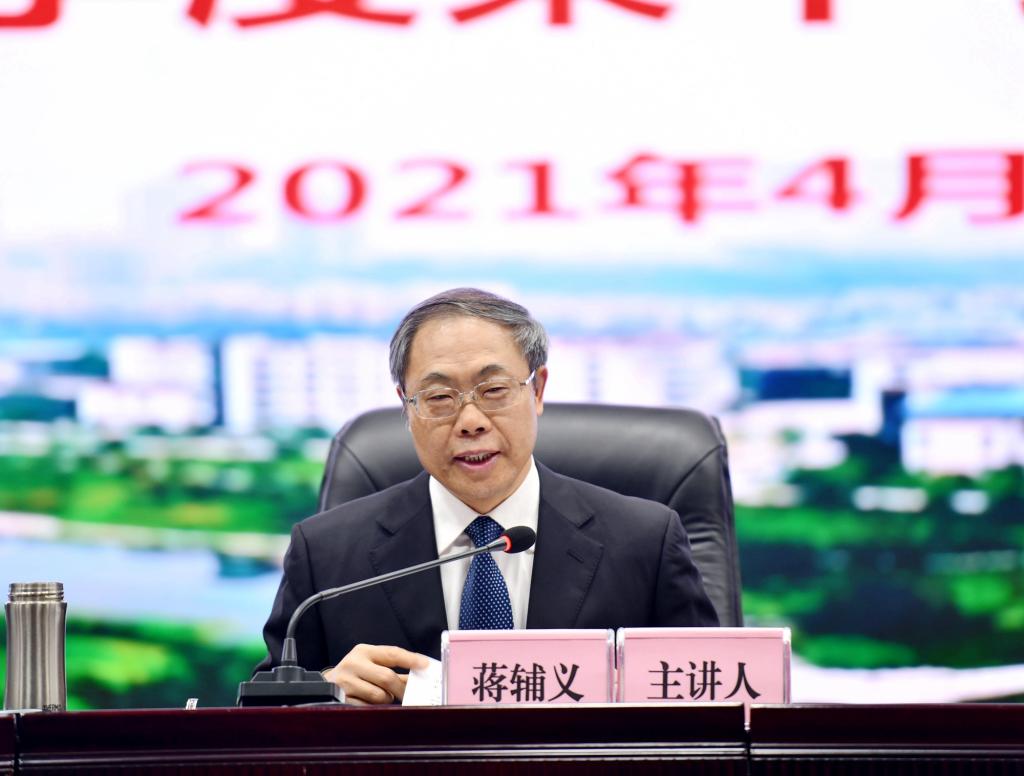 4月15日下午,学校组织召开校级党委理论学习中心组2021年第二季度集中学习(扩大)会,邀请省政协委员、党史专家蒋辅义教授来校作题为《坚持中国共产党对一切工作的全面领导》的辅导报告。会议由党委书记廖斌主持。