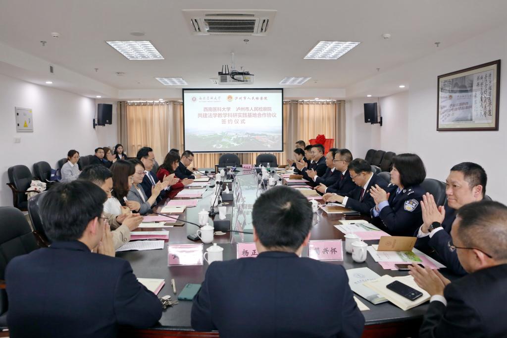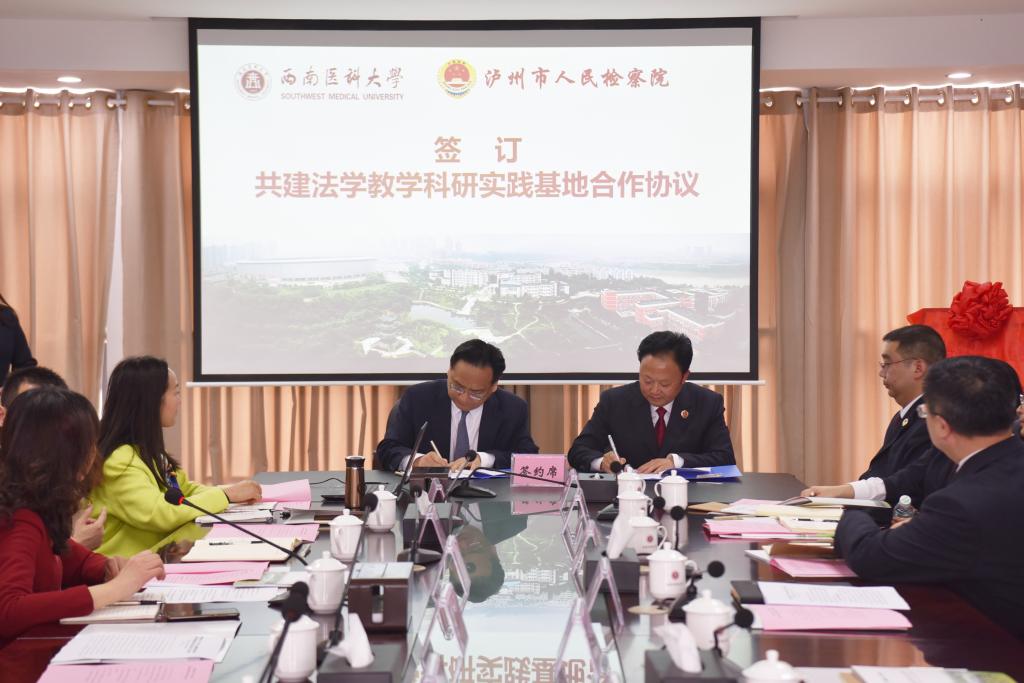 4月13日下午,我校与泸州市人民检察院“共建法学教学科研实践基地合作协议签约仪式”在城北校区德诚楼621会议室举行。泸州市人民检察院以及学校相关领导、干警和师生代表参加了仪式。仪式由学校党委常委、副校长何涛主持。