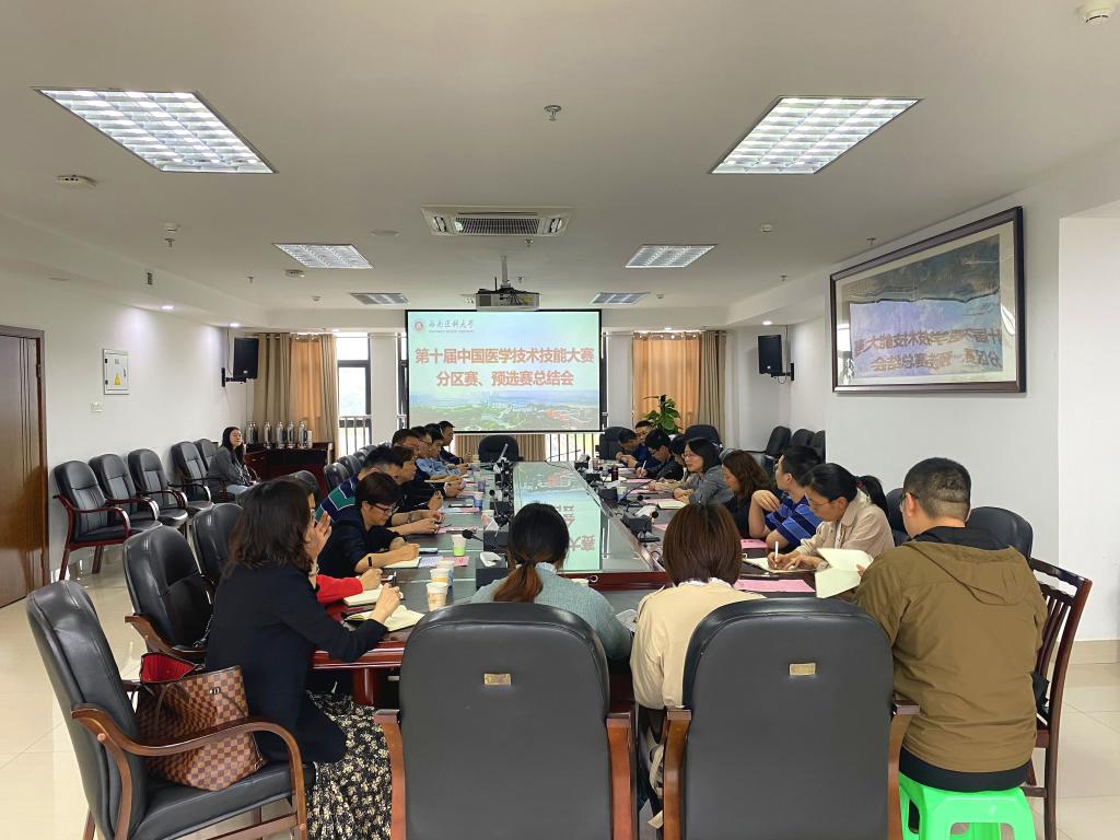 4月22日下午,第十届中国医学技术技能大赛分区赛、预选赛总结会在德诚楼521会议室召开。学校党委常委、副校长何涛及各参赛院系分管教学领导、教务科科长、指导教师及参赛学生代表参加会议,会议由教务处处长郑小莉主持。