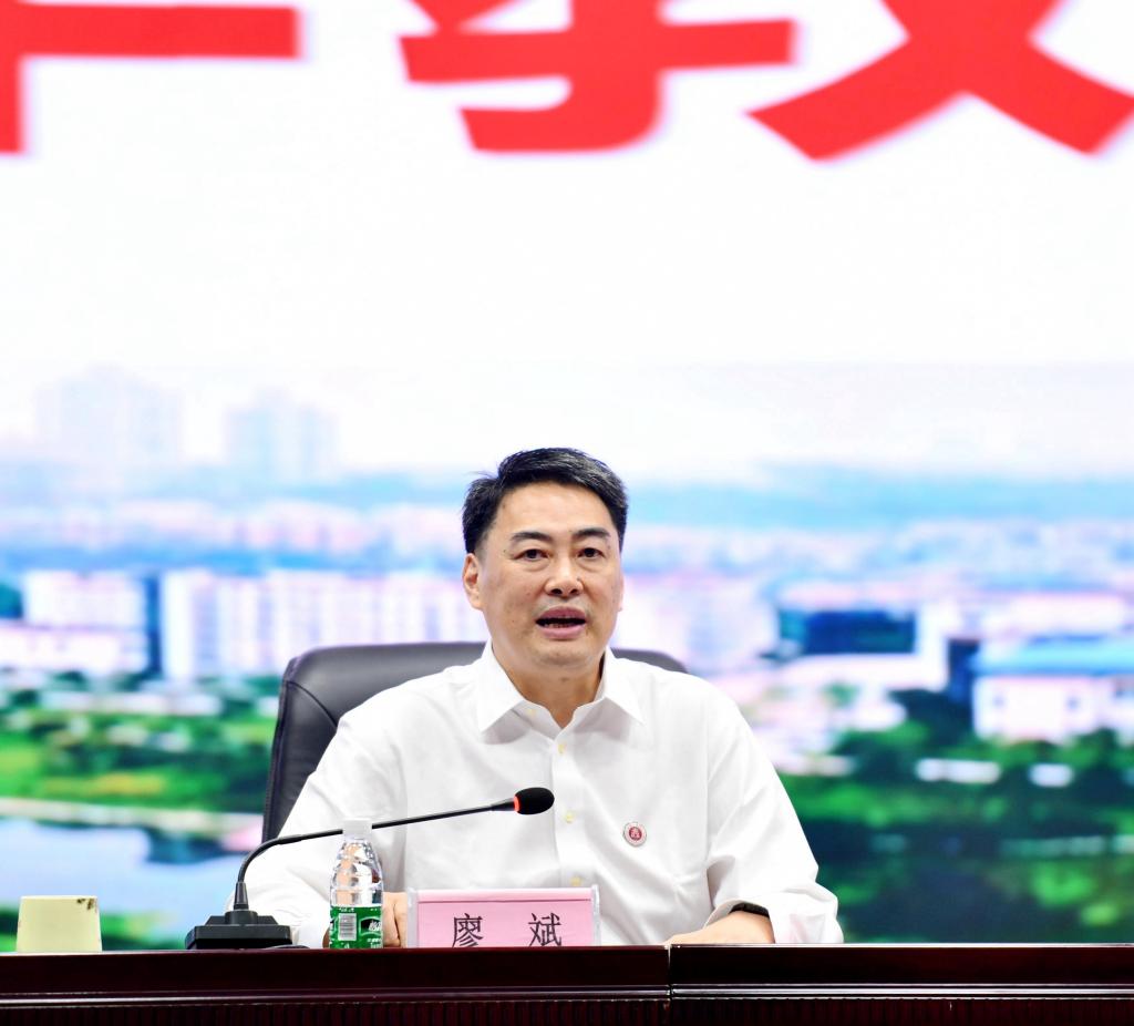 就进一步做好学校教育教学工作,廖斌提出三点要求。一是坚持正确办学方向,准确把握新形势新要求,落实立德树人根本任务。要始终坚持社会主义办学方向,紧紧围绕“培养什么样的人、如何培养人、为谁培养人”这个核心来谋划全校教育教学工作。二是深化教育教学改革,优化专业布局结构,构建高水平人才培养体系。主要做到深化学科专业内涵建设,深入推进“双万计划”建设,重点开展医学人才培养模式改革工作,稳中求进办好留学生教育和继续教育。三是强化师资队伍建设,强化教学条件建设,为培养一流人才提供坚实保障。着力抓高水平师资队伍建设,抓教学场地设施建设,抓管理服务效能提升,抓安全稳定工作。