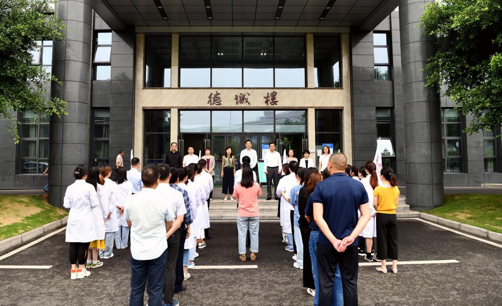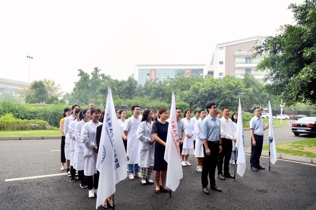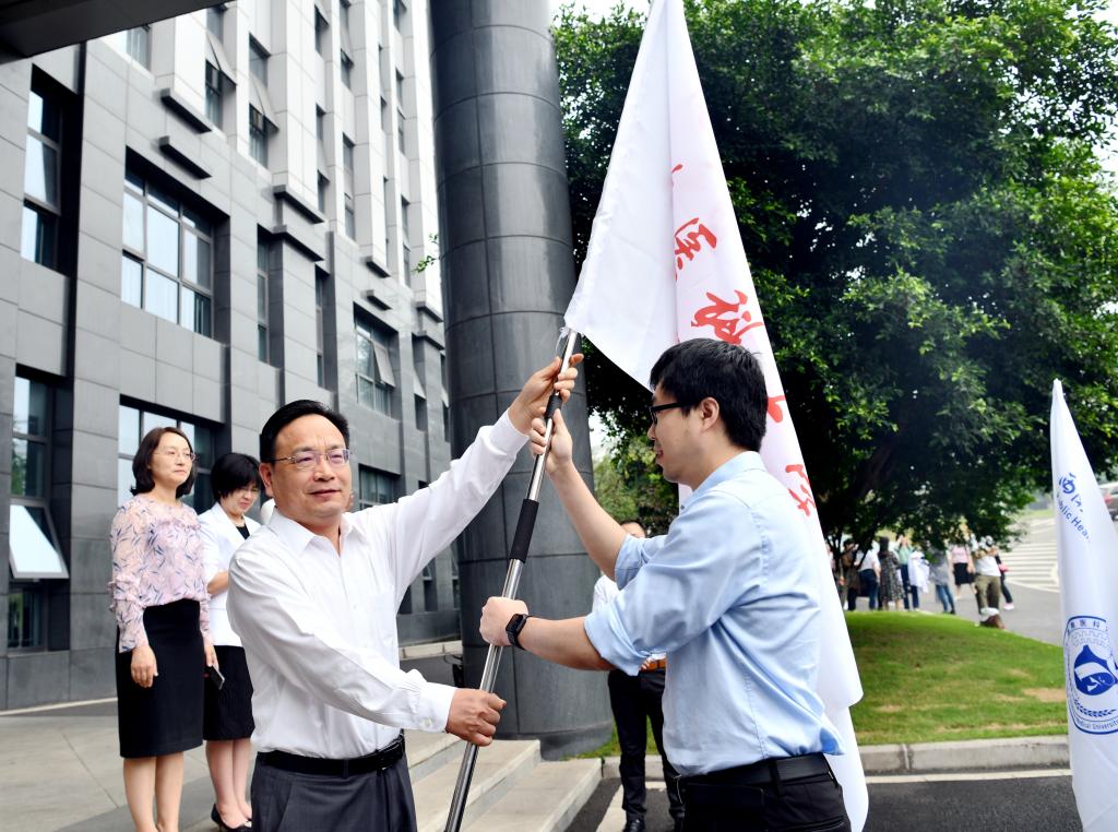 5月13日上午,第十届全国大学生医学技术技能大赛总决赛出征仪式在德诚楼前举行。学校党委书记廖斌,主持行政全面工作副校长张春祥,党委常委、副校长何涛,教务处及学工部相关领导,临床医学院、中西医结合学院、护理学院、公共卫生学院四个参赛院系负责人、培训老师以及参赛选手参与此次仪式。出征仪式由何涛主持。