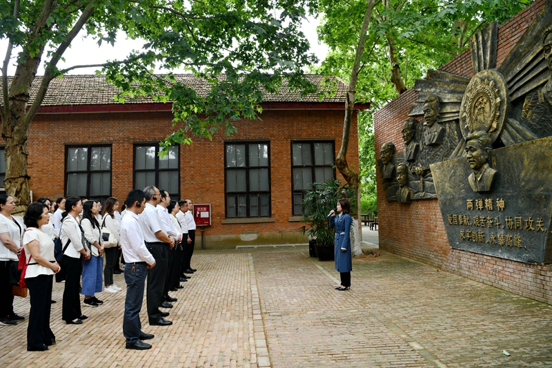 在邓稼先旧居前,全体成员向以邓稼先为代表的两弹元勋敬献花篮,缅怀老一辈科学家爱党爱国、无私无畏的革命情怀,全体成员在刘毅同志带领下重温入党誓词。