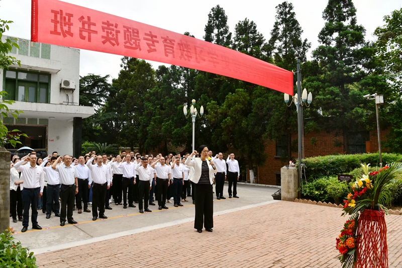 廖斌在开班仪式上强调,本次读书班学习既是一次“凝神铸魂、固本强基”的思想大淬炼,也是一次“坚定信仰、涤荡心灵”的灵魂大洗礼。针对此次专题读书班,廖斌对全体学员提出三点要求。一是要珍惜学习机会,学有所思、学有所悟、学有所获,补足精神之钙,坚定理想信念,锤炼党性修养;二是要强化思想自觉,推动党史学习教育往深里走,要扎实改造学风,推动党史学习教育往心里走,要紧密联系实际,推动党史学习教育往实里走;三要要聚焦学史明理、学史增信、学史崇德、学史力行,大力弘扬“热爱祖国、无私奉献,自力更生、艰苦奋斗,大力协同、勇于登攀”的“两弹一星”精神,牢记为党育人、为国育才使命,以更加宽广的视野、更加深入的谋划、更加有力的举措、更加昂扬的姿态,加快建设特色鲜明的西部高水平医科大学,为推动治蜀兴川再上新台阶,全面建设社会主义现代化国家作出新的更大贡献。