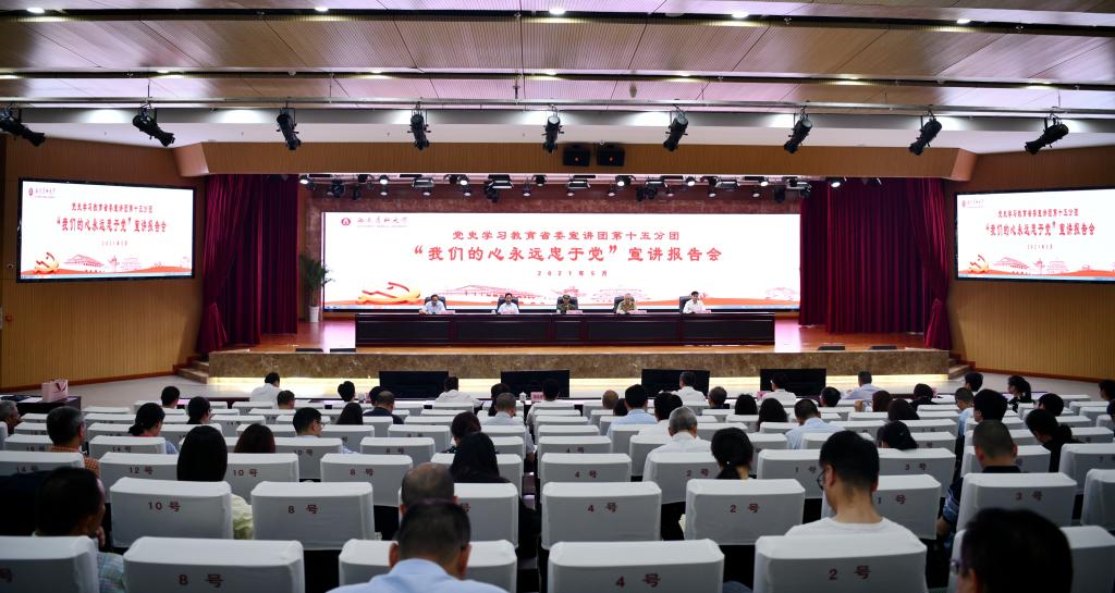 鲜花敬英雄,国歌聚人心。5月27日,在英国上市公司365城北校区第一学术报告厅内,伴随着阵阵掌声,党史学习教育省委宣讲团第十五分团(“五老”、英雄模范先进典型宣讲分团)四位成员走进英国上市公司365,为学校的全体校领导、处级领导干部、教师代表和学生代表近300人开展主题为“我们的心永远忠于党”的宣讲报告会。