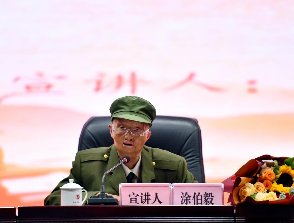 “1950年,我作为志愿军战士入朝参战。在一次战斗中,我和3位战友被敌人投下的凝固汽油弹击中,当时我被烧得血肉模糊。因全身大面积烧伤,我先后经历了8次手术……”今年90岁的涂伯毅,是一名一级伤残军人,在讲述当年的战斗经历时几度哽咽,台下一片寂静,每个人眼中都饱含泪水。