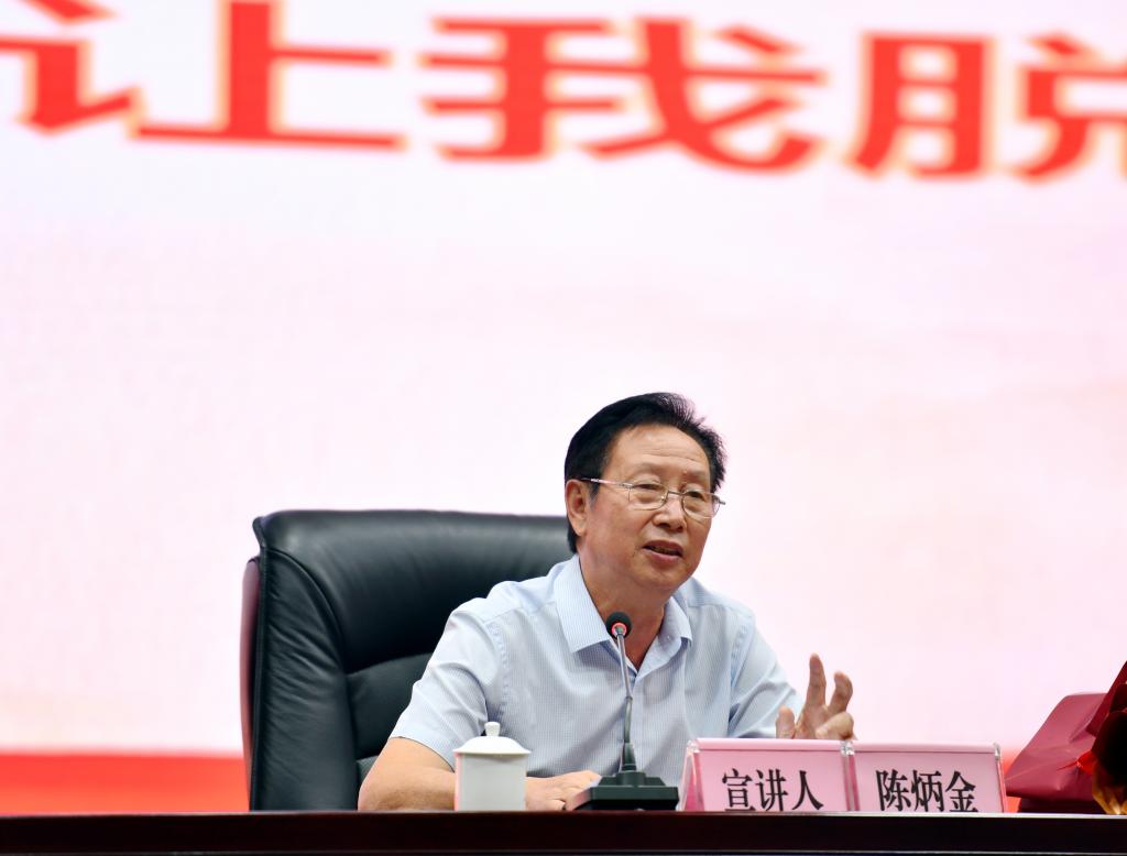 随后,陈炳金、张鑫也分别讲述了各自的经历。每一位宣讲团成员都满怀真情实感,讲述他们浴血奋战的英雄故事、身残志坚的动人事迹、顽强拼搏的奋斗历程,充分彰显了初心不改的崇高信念、对党忠诚的政治品格、心系群众的为民情怀、永不懈怠的奋斗精神,生动诠释了共产党人不忘初心、牢记使命的政治本色。
