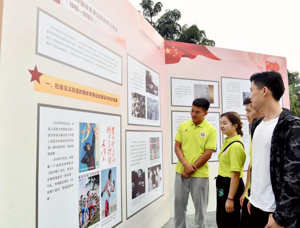 仪式中与会人员在体育学院学生讲解员秦馨的带领下,通过一段段文字、一张张图片,一起重温了中国百年体育发展的辉煌历程、伟大成就。