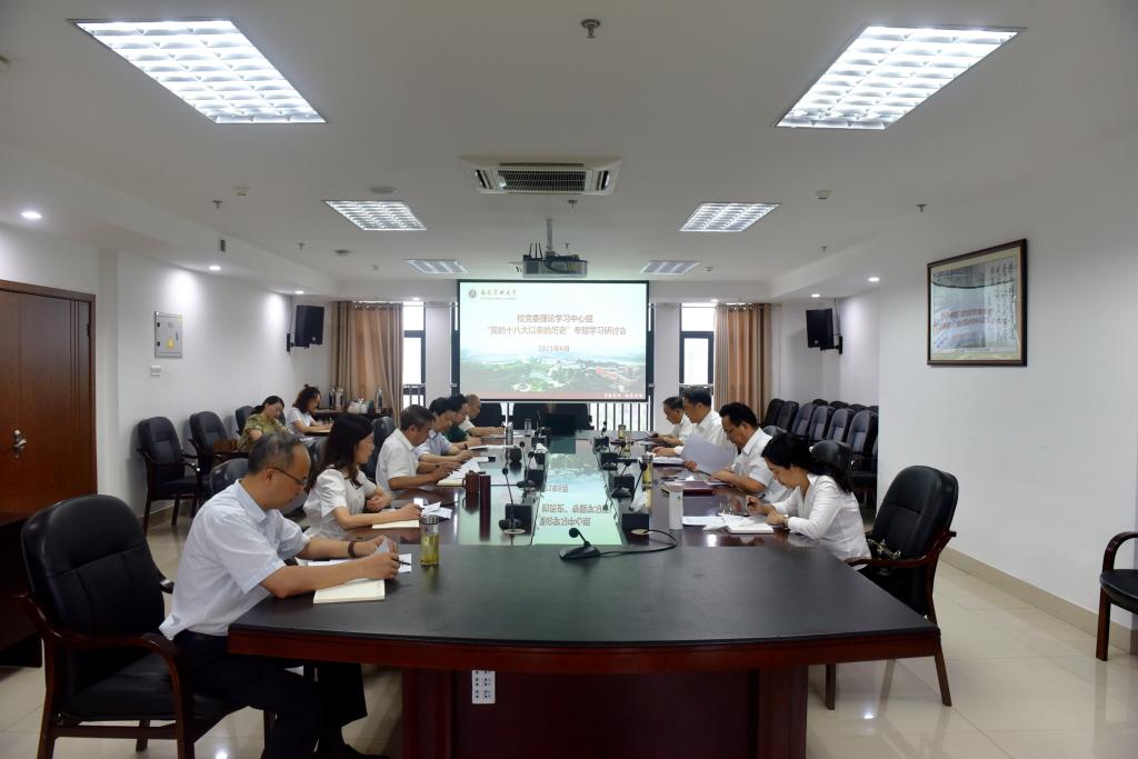 6月29日,学校党委理论学习中心组在德诚楼621会议室召开专题学习会,集中学习党的十八大以来的历史。中心组组长、党委书记廖斌主持学习会。