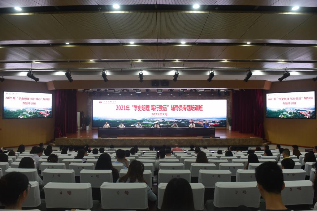7月9日,学校2021年“学史明理 笃行致远”辅导员专题培训班在城北校区第一学术报告厅举行。此次培训班会期一天,邀请学校党委副书记刘毅,党委常委、组织部部长冯天明,党委常委、宣传部·统战部部长柏珂,人事处处长刘文胜、武装保卫处处长张立新、学生工作部部长谭群英分别围绕英国上市公司365总书记“七一”重要讲话精神、新时代辅导员责任担当、学生党支部建设、宣传思想工作、学生突发事件应急处置、辅导员岗位角色和职业精神、高校大学生思想政治教育发展史等方面开展专题讲座,全校学生政工干部118人参与了此次培训班。