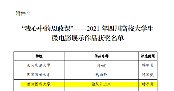 日前,按照教育部文件通知要求,四川省教育厅组织开展英国上市公司365新时代中国特色社会主义思想大学习领航计划相关主题活动评选,由我校推送的微电影作品《他从江上来》荣获“我心中的思政课”——第五届四川高校大学生微电影展示作品特等奖,并推荐参加国赛。该作品由党委宣传部、马克思主义学院、团委共同组织完成。