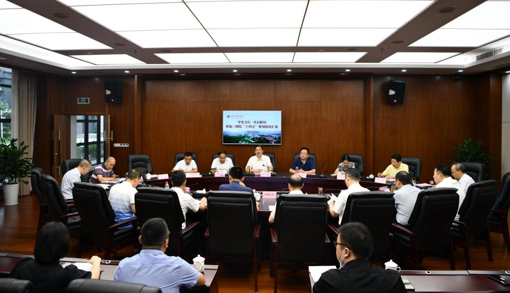 会议第二阶段听取了学校学科与“双一流”建设、学术研究与科技创新“十四五”专项规划情况汇报。发展规划处、科技处负责人分别汇报了学科与“双一流”建设“十四五”专项规划、学术研究与科技创新“十四五”专项规划,与会人员开展了讨论交流。