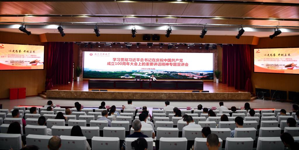 专题宣讲报告会采取现场会与视频直播相结合的方式进行。全体校党委理论学习中心组成员、处科级领导干部、党支部书记、教研室主任以及师生代表400余人聆听了宣讲。