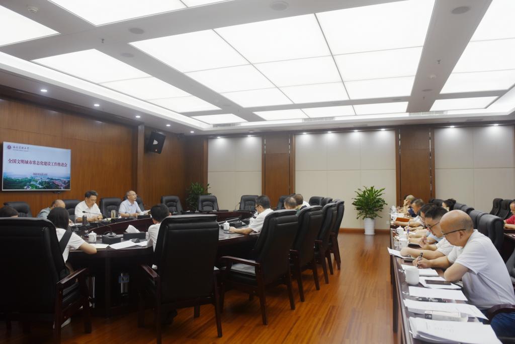 9月14日上午,学校在城北校区第一会议室召开全国文明城市常态化建设工作推进会。学校党委书记廖斌出席,党委宣传部、学生工作部、保卫部、团委、基建后勤处、资产经营总公司等全国文明城市常态化建设工作主要牵头单位负责人及各二级党组织负责人参加会议。会议由学校党委常委、宣传部·统战部部长柏珂主持。