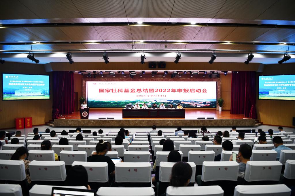 为全面总结“十三五”期间我校哲学社会科学工作取得的成绩,分析存在的主要问题,全面动员部署2022年国家社科基金申报,9月14日,我校在德诚楼第一学术报告厅举办国家社科基金暨2022年申报启动大会。学校主持行政全面工作副校长张春祥,党委宣传部、科技处、教务处、发规处、学生工作部等负责人,近三年国家社科基金、教育部人文社科项目获得者,人文类院系及相关院系院长、分管科研的负责人、科管人员、博士及教师代表、研究生代表等200余人出席会议。会议由科技处副处长唐雁主持。