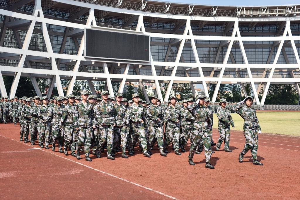 军训汇演在雄壮的分列式进行曲中拉开帷幕,全场气氛热烈而庄重。分列式结束后,新生们进行了精彩的擒敌拳、匕首操汇报表演,整齐划一的动作、势破重霄的呐喊,充分展现了同学们的青春风采,赢得了全场经久不息的掌声。