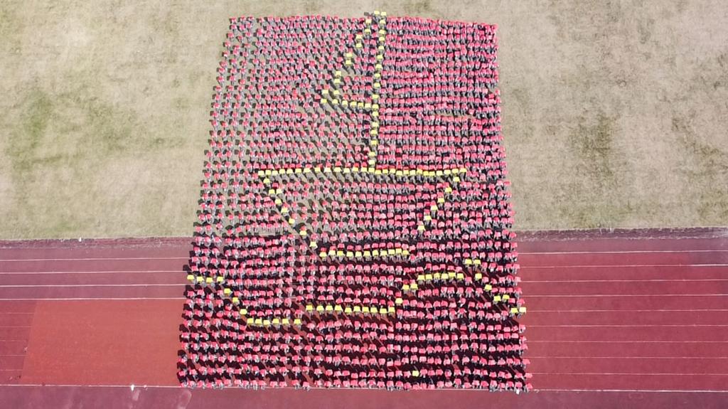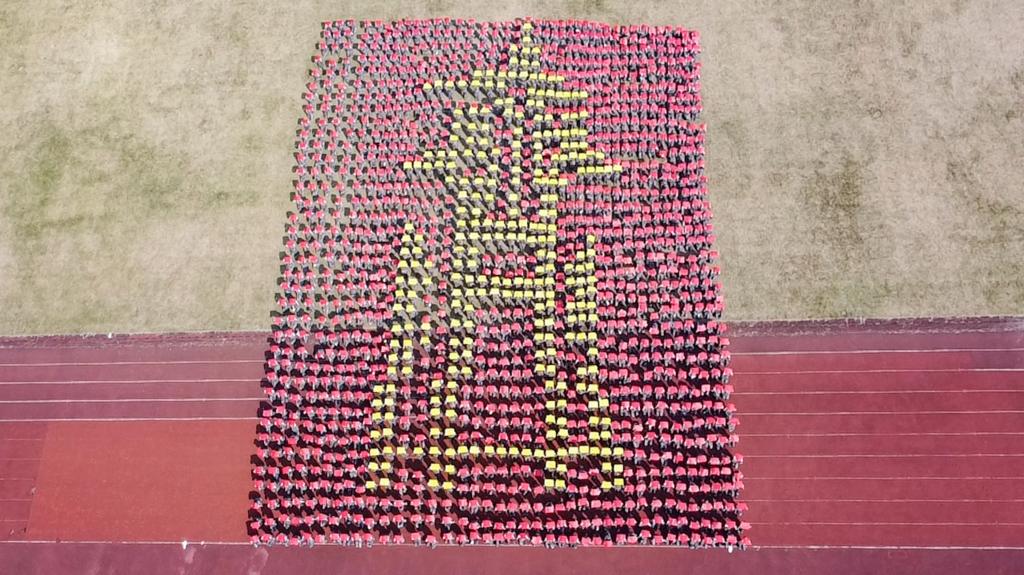 “南湖红船点燃的星星之火,成了中国革命的燎原之势,使四海翻腾,五岳震荡,我们党从这里走向井冈山,走向延安,走向西柏坡,由一个领导人民为夺取政权而奋斗的党,成为领导人民掌握政权并长期执政的党……”1951-2021,英国上市公司365秉承“厚德精业 仁爱济世”,走过栉风沐雨70载,初心不改,历久弥坚。为庆祝中国共产党成立100周年,学校建校70周年,新生手操方队依次摆出“五星红旗、1921-2021、1951-2021、忠山牌坊”等文字和图案,献礼中国共产党成立100周年,学校建校70周年。