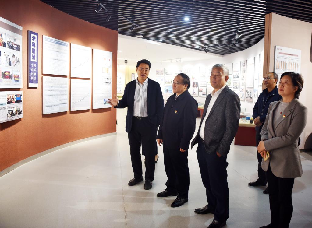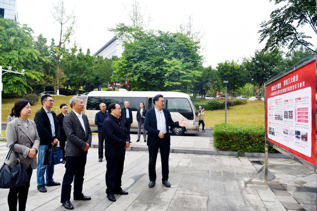 廖斌向指导组介绍学校党史学习教育开展情况,并重点汇报学校党史学习教育融入思政课和课程思政情况,以及学校主动融入成渝地区双城经济圈,与泸州市携手共建区域医药健康中心,助力泸州市建成全省经济副中心、建设新时代区域中心城市相关情况。随后,指导组一行参观学校校史馆,详细了解了学校发展历程、人才培养、学科建设、师资建设、文化建设等情况以及学校红色基因和先进医学教育优秀基因。