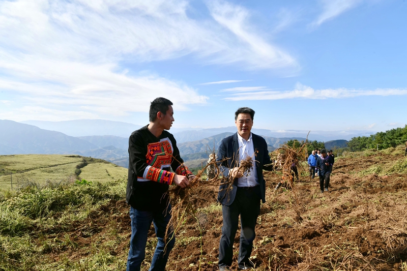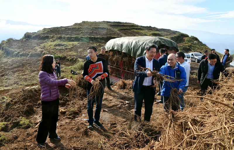 廖斌一行还对4户结对帮扶户进行了集中慰问,并考察了500亩中药材种植基地。