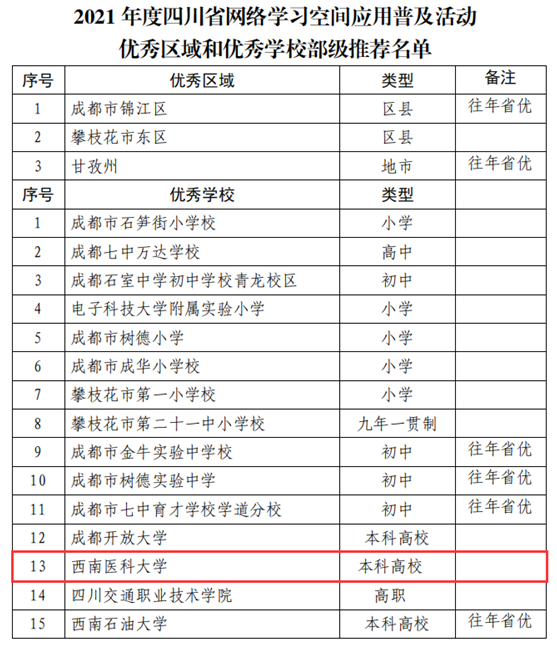 附:2021年度四川省网络学习空间应用普及活动优秀区域和优秀学校部级推荐名单