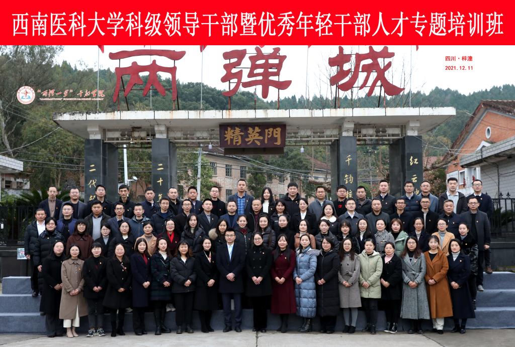 为深入开展党史学习教育,强化学校科级领导干部和优秀年轻干部人才的党性教育,12月8-11日,学校科级领导干部暨优秀年轻干部人才培训班在绵阳“两弹一星”干部学院举行。本次培训分两批次,共计160余人参加,组织部副部长李星、人事处副处长李理分别带队参加培训。