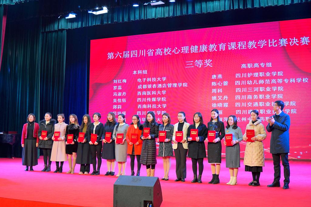 会议举行了第六届四川省高校心理健康教育课程教学决赛。本次比赛由四川省教育厅主办、四川省心理学会高校心理健康教育专委会承办,分为本科组、高职高专组,设有初赛、复赛和决赛三个环节。86所高校180余名教师报名参赛,经过专家集中评审,最终选拔出30名心理健康教育教师进入决赛。决赛现场,参赛教师采取多样化的教学方法与手段,对讲授内容进行了生动呈现。经过激烈角逐,我校教师冯淑丹荣获三等奖。