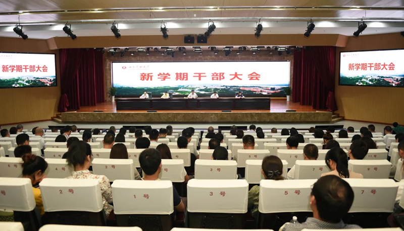9月6日下午,2018年新学期干部大会在城北校区德诚楼学术报告厅举行。在家校领导廖斌、刘广益、彭钢、何涛、聂敏海出席大会。全校处科级干部(含调研员),各二级工会主席,校本部支部书记,教研室、实验室(中心)主任,三附院党办、院办、学生科、教务科、研究生科负责人等参加了大会。大会由党委书记廖斌主持。会上,党委书记廖斌,党委常委、副校长刘广益分别通报了暑假期间学校党政有关工作情况,并安排部署了2018年下半年党政主要工作。