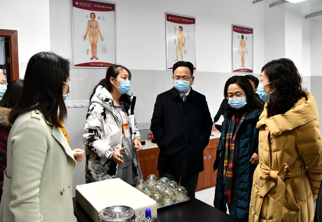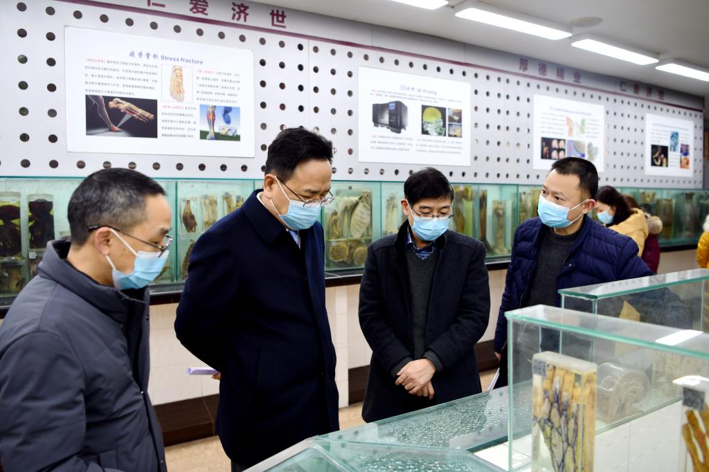 检查组一行对奥体中心的体育学院运动康复专业实验室、明理楼的基础医学院化学实验室和康复医学系康复医学实训室、荟文楼的基础医学院解剖实验室和大学生心理中心、思源楼的药学实验室、中西医结合学院临床技能中心和口腔医学院实验教学中心进行实地巡查,重点对实验实践教学运行、日常管理运行、物质设备安全等情况,详细了解了全校实验实践教学资源、条件保障情况,并对实验室建设、日常管理、文化打造等方面进行了指导,对提升学校实验教学水平和质量具有重要的促进作用。