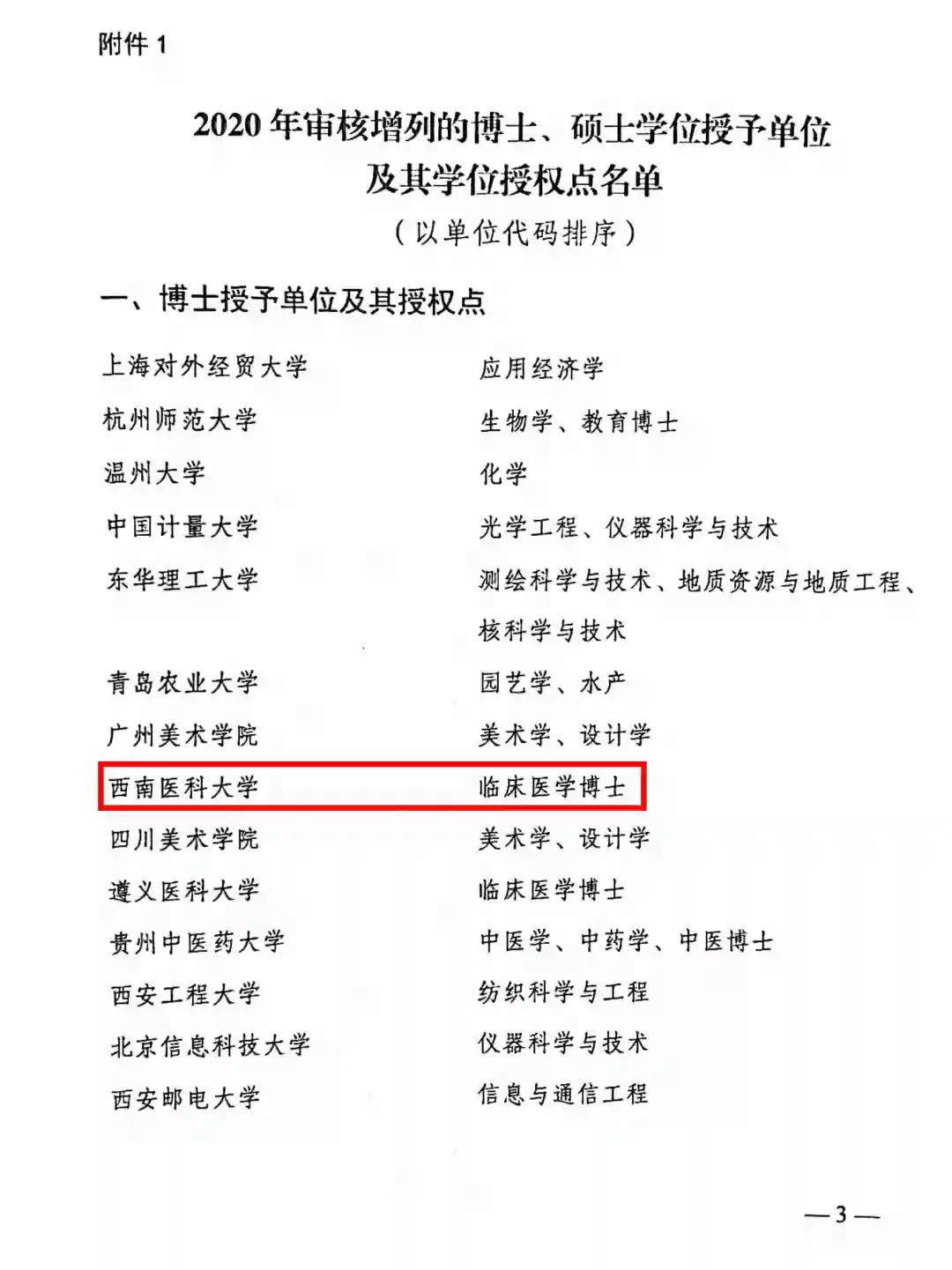 临床医学获批博士专业学位授权点