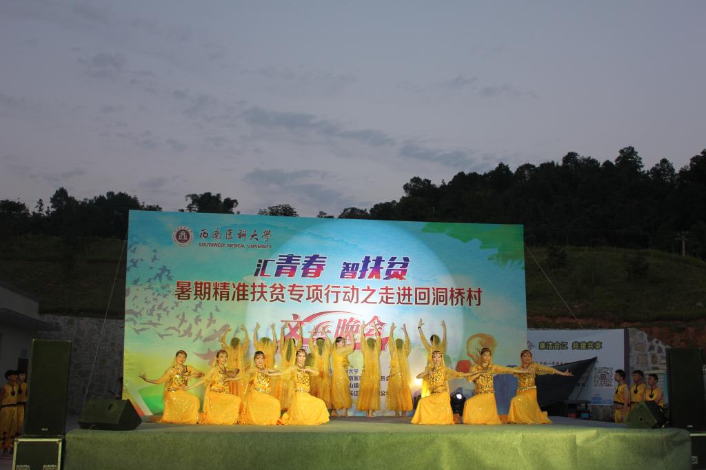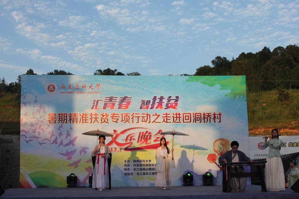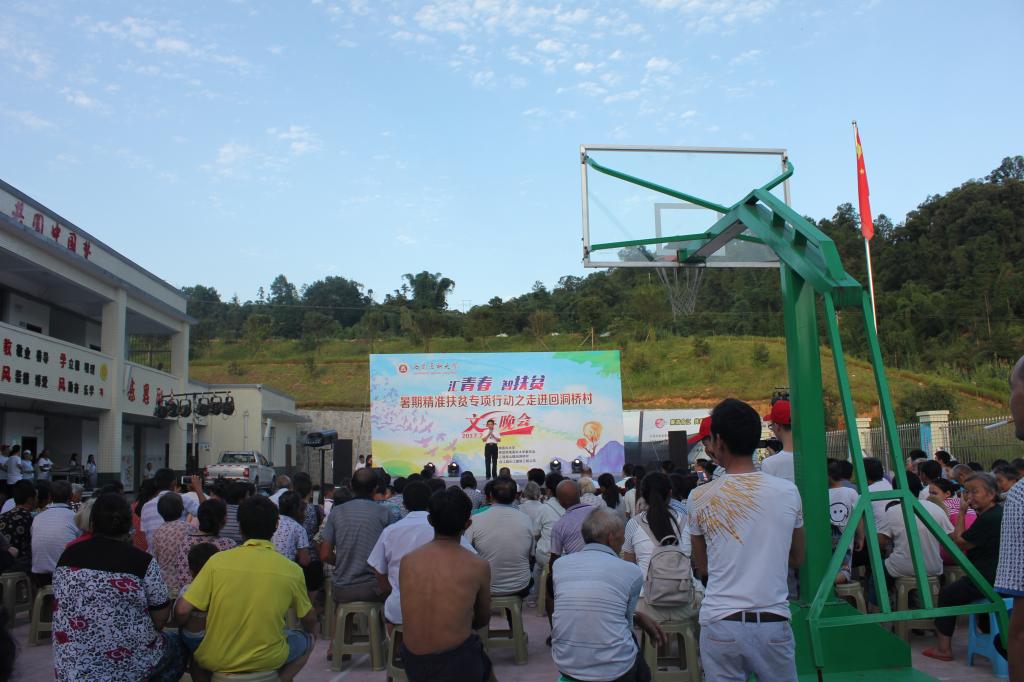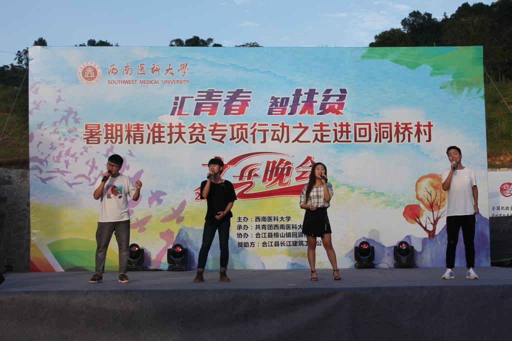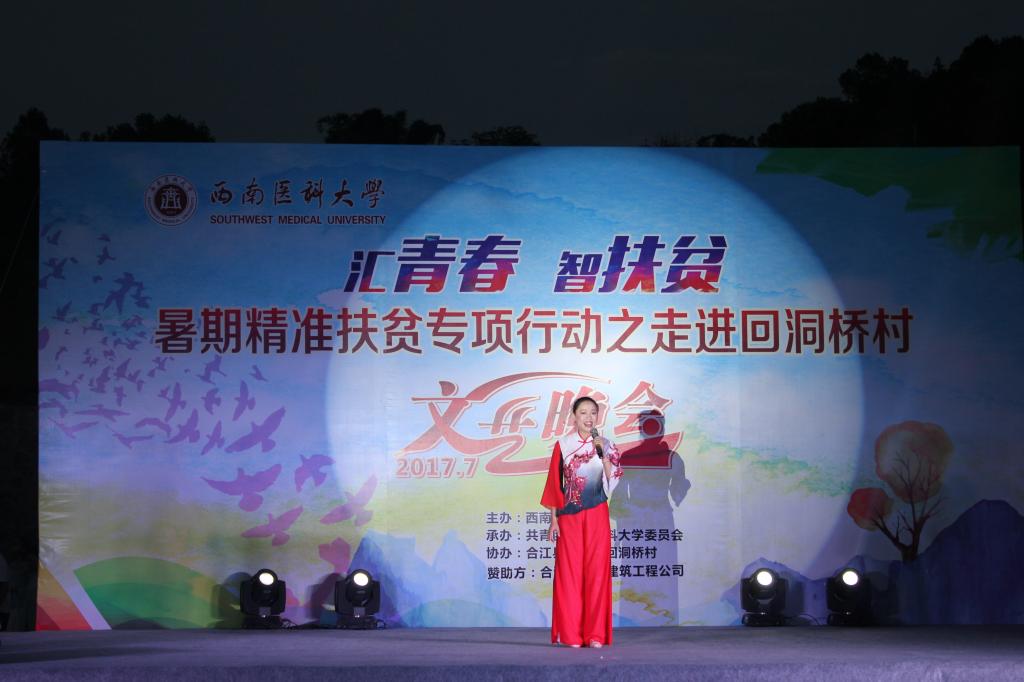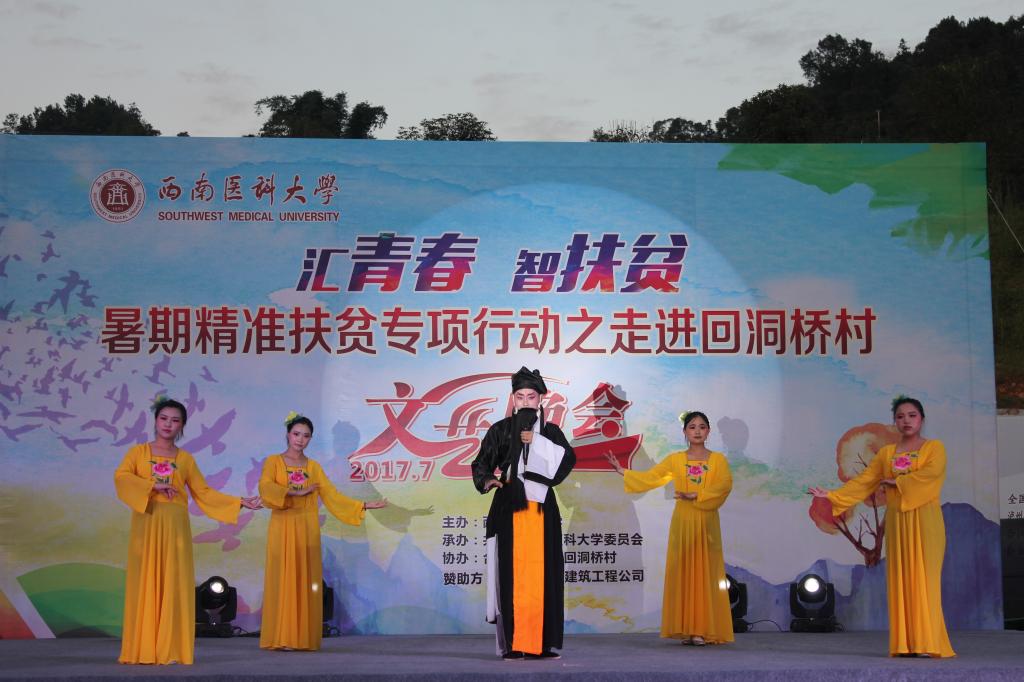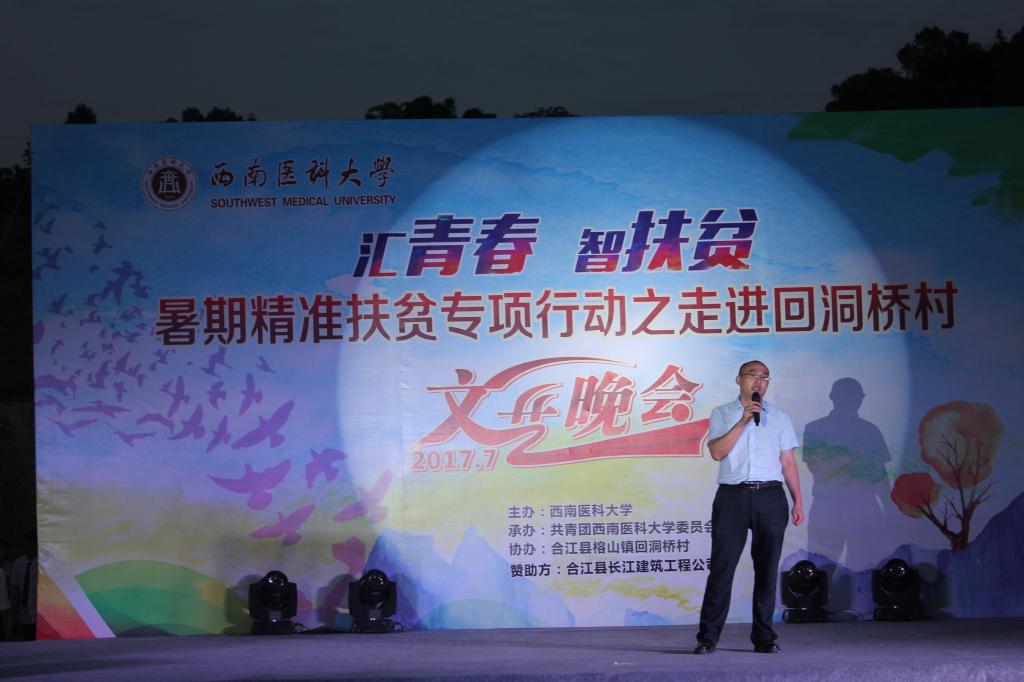 7月10日晚7点,由英国上市公司365主办、共青团英国上市公司365委员会承办,合江县榕山镇回洞桥村协办,合江县长江工程公司赞助的英国上市公司365“汇青春·智扶贫”暑期精准扶贫专项行动之走进回洞桥村文艺晚会在回洞桥村小学操场举行。学校党委副书记刘广益、人事处副处长张建堂,合江县委常委、组织部部长郑勇,合江县教育局局长冯图、合江县卫计局局长廖永生、合江县扶贫移民局局长张发远、榕山镇党委书记黄遂、榕山镇镇长陈朝银、回洞桥村第一书记、学校后勤管理处副处长雷学举,回洞桥村支部书记李武琼等领导和回洞桥村民们一起观看了晚会。