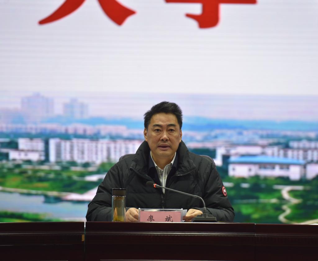 党委书记廖斌讲话。他向全校干部职工提出了三点希望和要求:一是坚决拥护省委省政府决定,希望全校干部职工统一思想认识,全力支持代荣阳同志开展工作;二是希望代荣阳同志大胆工作、履职尽责,抓好分管领域党的建设、从严治党、意识形态工作,抓好分管部门行政管理工作,加强学习,加强沟通,把握好角色定位,求真务实、开拓创新,用新的业绩回报省委省政府的信任和干部职工的期望;三是希望全校干部职工立足本职,敬业奉献,切实做好本职工作、维护安全稳定,抓紧做好这学期的收官工作,扎实做好寒假期间的值班工作,确保学校各项工作平稳有序推进。