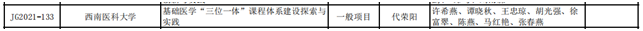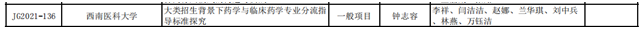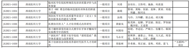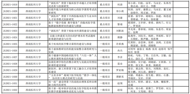 近日,四川省教育厅下发《四川省教育厅关于公布2021-2023年四川省高等教育人才培养质量和教学改革项目立项名单的通知》(川教函〔2022〕114号),我校组织申报的《“新医科”背景下临床医学卓越人才培养模式改革与创新研究》等24个项目获批立项,其中重点项目6项,一般项目18项。(见附表)
