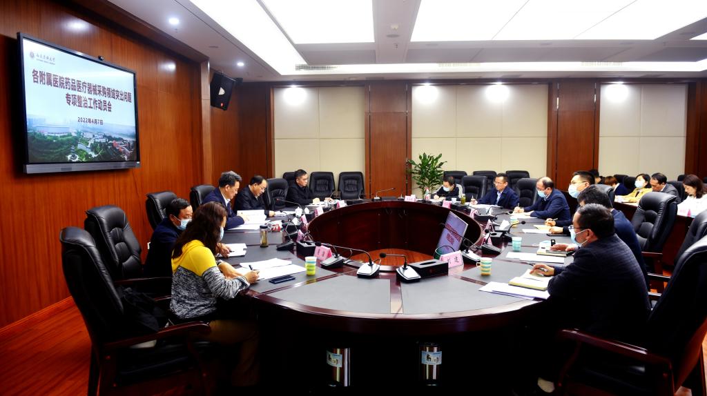 为坚决践行以人民为中心的发展理念,持续深化整治医疗采购领域的突出问题,4月7日下午,学校各附属医院药品医疗器械采购领域突出问题专项整治工作动员会在城北校区一会议室召开。党委书记廖斌出席会议并讲话,驻校纪检监察组组长,学校党委副书记、纪委书记李尚志主持会议。