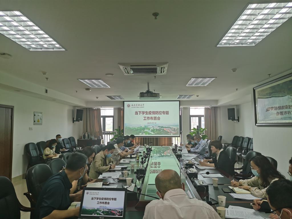 4月11日下午,学校学生疫情防控工作专题布置会在德诚楼521会议室召开。学校党委副书记刘毅,防控办、学生工作部、保卫处、教务处、基建后勤处、研究生院相关负责人以及二级院系分管学生工作负责人参会。会议由学生工作部部长谭群英主持。